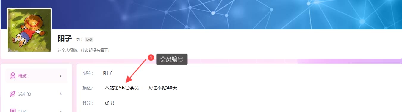 ②个人页面 描述栏目 第XXX号会员 XXX即为个人会员编号